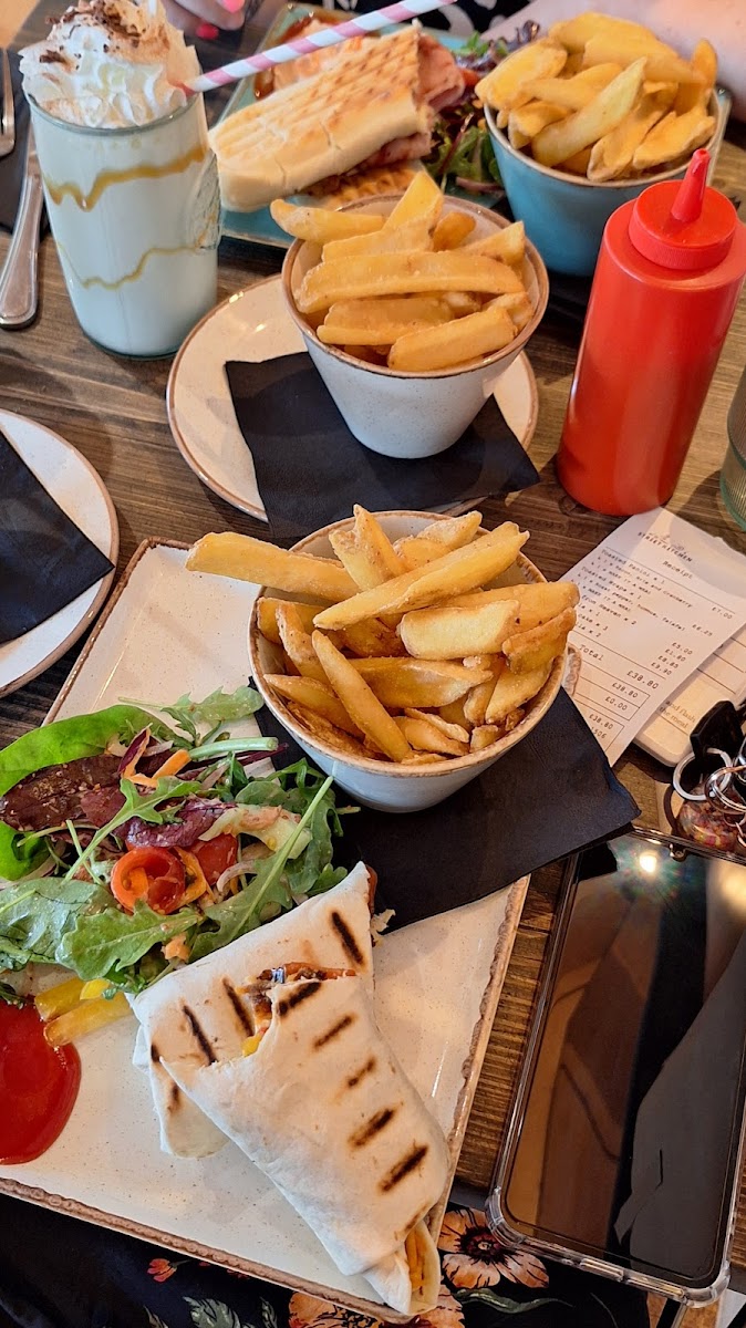 The menu here is brimming with tantalizing options that cater to a variety of tastes. For a refreshing start, don't miss the opportunity to sip on their freshly squeezed juices—either a vibrant Pressed Orange or Apple juice, both priced at just £2.95. If you’re in the mood for something hearty, the quesadillas are a must-try. The Cheese, onion and chipotle version (V) is an absolute delight, oozing cheese and enveloped in a perfectly toasted tortilla, all for just £5.95. Alternatively, the BBQ chicken and cheese quesadilla for £7.95 is a flavor-packed option that won’t disappoint.